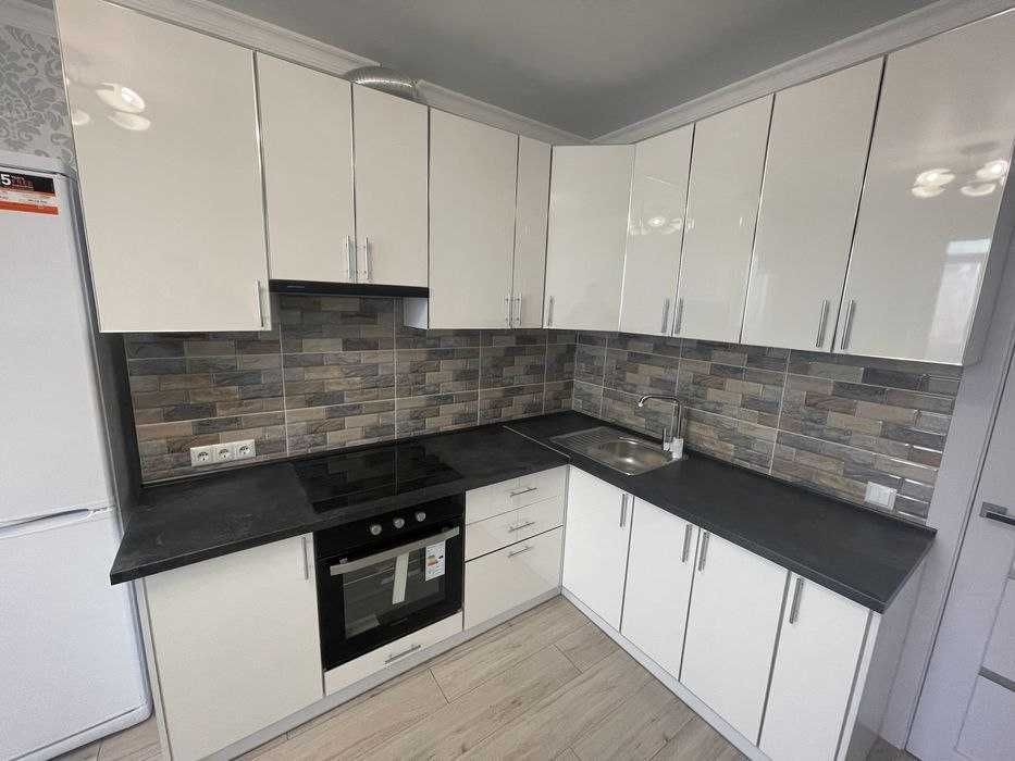 Кухня полностью укомплектована мебелью и техникой.