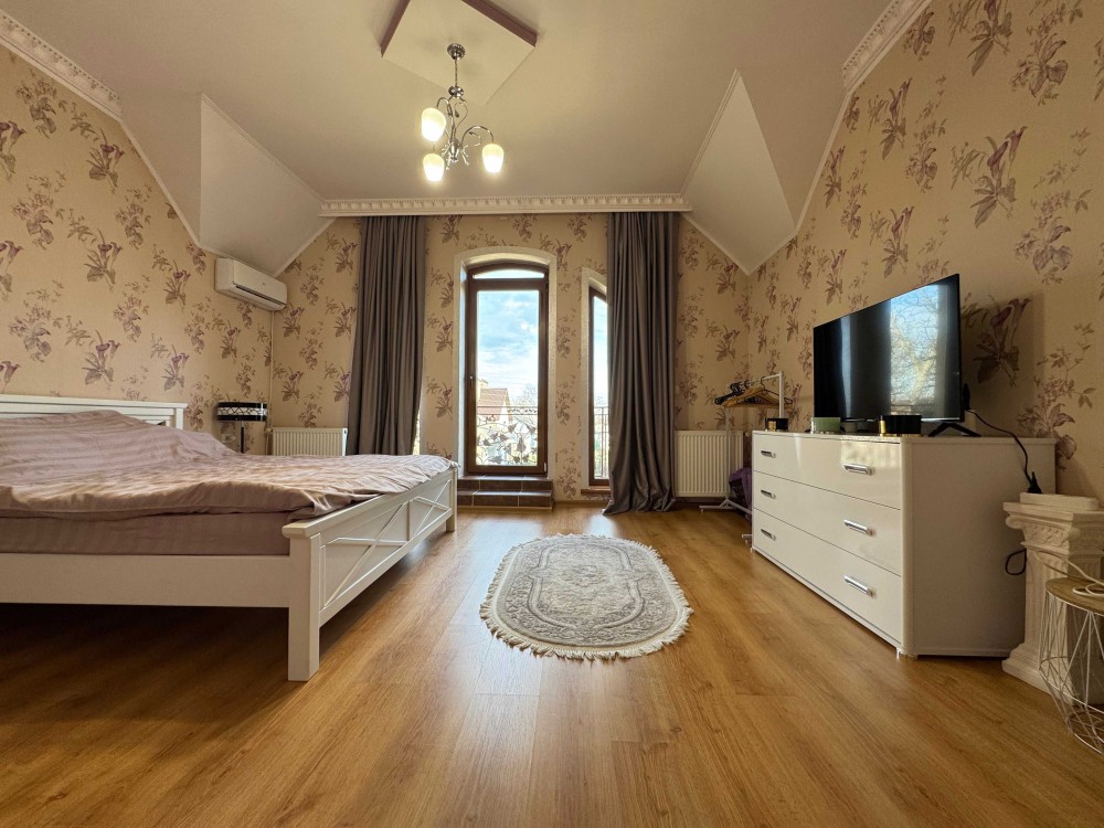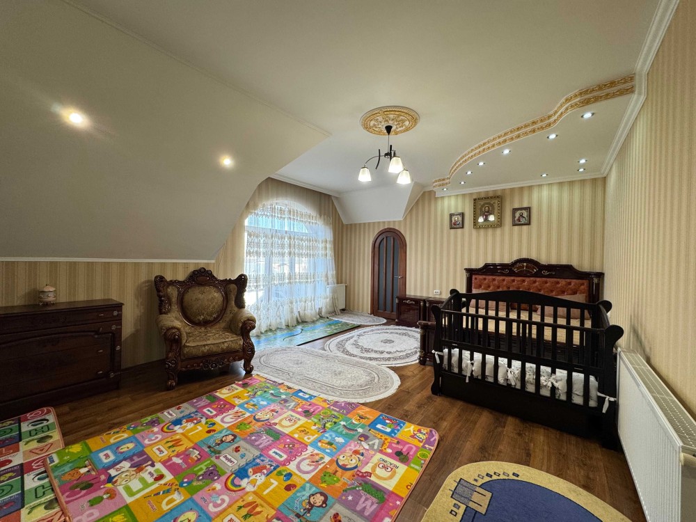 • Другий поверх: п’ять кімнат, серед яких дві спальні з виходом на відкритий балкон, дитяча кімната, ігрова зона для малечі та затишний кабінет для роботи або творчості.