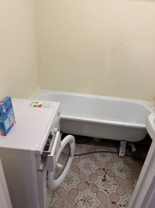 Санвузол — роздiльний, із ванною та пральною машиною — усе для вашої зручності.