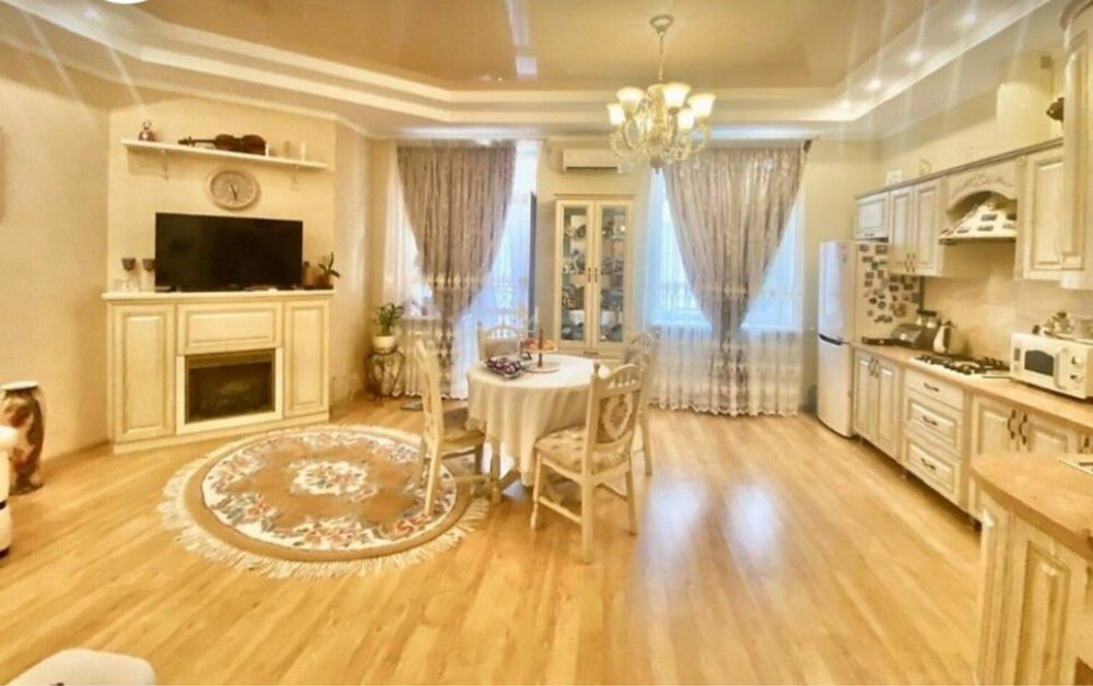Простора кухня-вітальня,стильний санвузол .