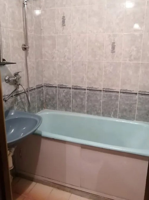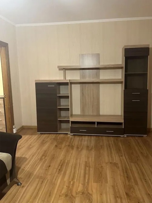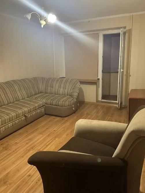 В жилому стані. Кухня облаштована кухонним гарнітуром та обідньою зоною, з техніки присутня газова плита та холодильник. В кімнаті встановлений широкий диван, стінка та розкладне крісло. На підлозі ламінат в гарному стані. Також є вихід на балкон через кімнату. Санвузол оснащений ванною.