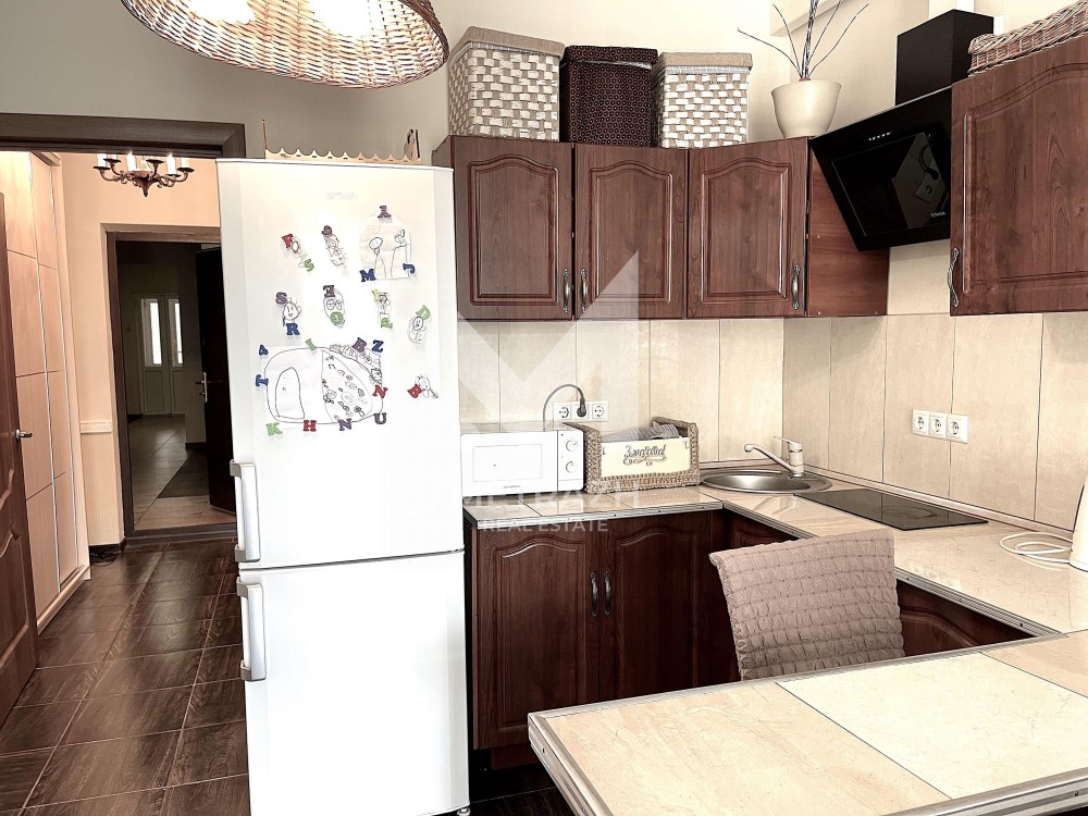 Эко локация! Продаётся, стильная 3ком.квартира у парка в Ирпене. 70м2. Расположена 2 этаже 5 этажного, красивого, клубного дома в ЖК Rococo Viol, расположенного по Ул. Чехова 11(Литературная). Квартира с дизайнерским, стильным авторским ремонтом и террасой 36м2. С шикарным видом из окон на сосны и дубы! Прекрасная атмосфера уюта и комфорта. Квартира с шум изоляцией, обесшумлены все потолки, весь пол и стены в спальнях. Плитка на кухне, коридоре и ванной Imola, - Италия. Техника Bosch и FRFNKE лучших моделей. Спальни 17,1м2, и 11м2.Кухня-гостиная 21м2.Из спальной выход на террасу 36м2. Дорогая, большая, современная кухня с лежанкой вдоль всего окна. Есть посудомоечная машина, измельчитель продуктов, плита газ и электричество, подсветка по всей кухне и в застекленном шкафу. В спальной комнате натуральная деревянная кровать с очень качественным матрасом. Во всю стену шкаф купе и датчиками включения света, и зеркалом. На стенках есть потолочная подсветка, итальянская штукатурка. В ванной комнате 7м2 – сантехника, ванна, унитаз – Villeroi & Boch. Двухконтурный газовый котел. Теплый пол. Имеется стабилизатор напряжения. Имеется кладовка с полками и сейфом для охотничьего оружия. Дом расположен напротив лучшего Центрального Сквера, в котором есть зона барбекю и большая детская площадка. Напротив дома магазины Сельпо, Фора и множество торговых точек и кафе. В 100 метрах – сосновый лес. В квартире всё новое. Ремонт производился основательно, использовались дорогие и качественные материалы. В квартире практически не жили. В ухоженном дворе дома собственный паркинг и с двух сторон шлагбаумы. Есть видеонаблюдение и кладовка в соседнем доме. Цена квартиры 140000дол.США.