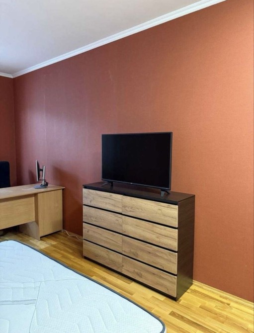 У спальні нове велике двоспальне ліжко з новим ортопедичним матрацом 1.8м×2м, вмістка шафа, робочий стіл, комод, телевізор зі смарт ТВ, кондиціонер.