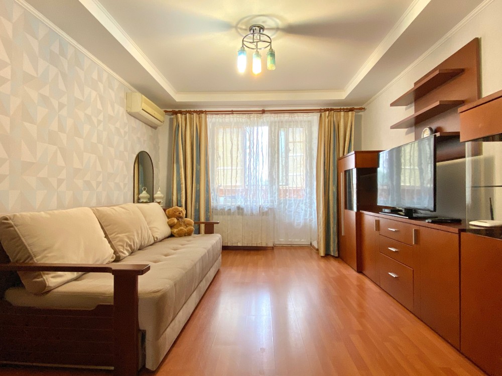 Квартира з сучасним ремонтом. Укомплектова меблями та технікою (варильна поверхня, духова шафа, фільтр на воду, холодильник, мікрохвильова піч, плазмовий телевізор, пральна машина, прасувальна дошка та праска, бойлер на 80 літрів, кондиціонер).