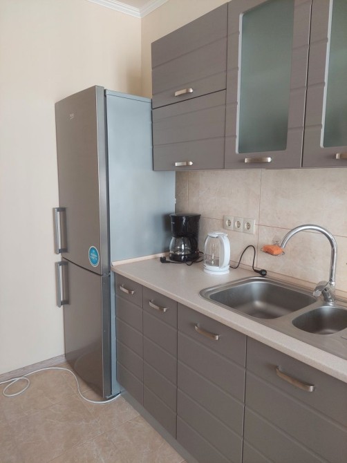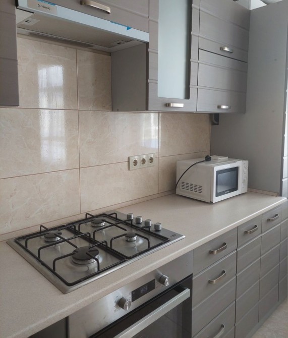 Квартира з гарним ремонтом, новими меблями та побутовою технікою (холодильник, пральна машинка, мікрохвильовка, електрочайник, кавоварка, кондиціонер, телевізор, інтернет, праска, прасувальна дошка і сушка для одягу). Квартира комфортна, сонячна і тепла. Велика кухня, також є вітальня з лоджією і окремо - спальня (зручне двохспальне ліжко з ортопедичним матрацом на ламелевому каркасі) та гардероб. На лоджії є робочий стіл. Зручна для проживання молодої пари без дітей і тварин.