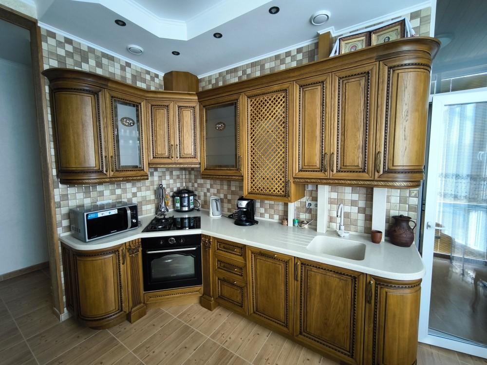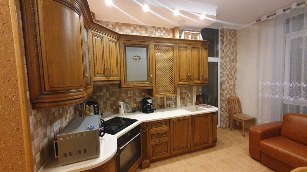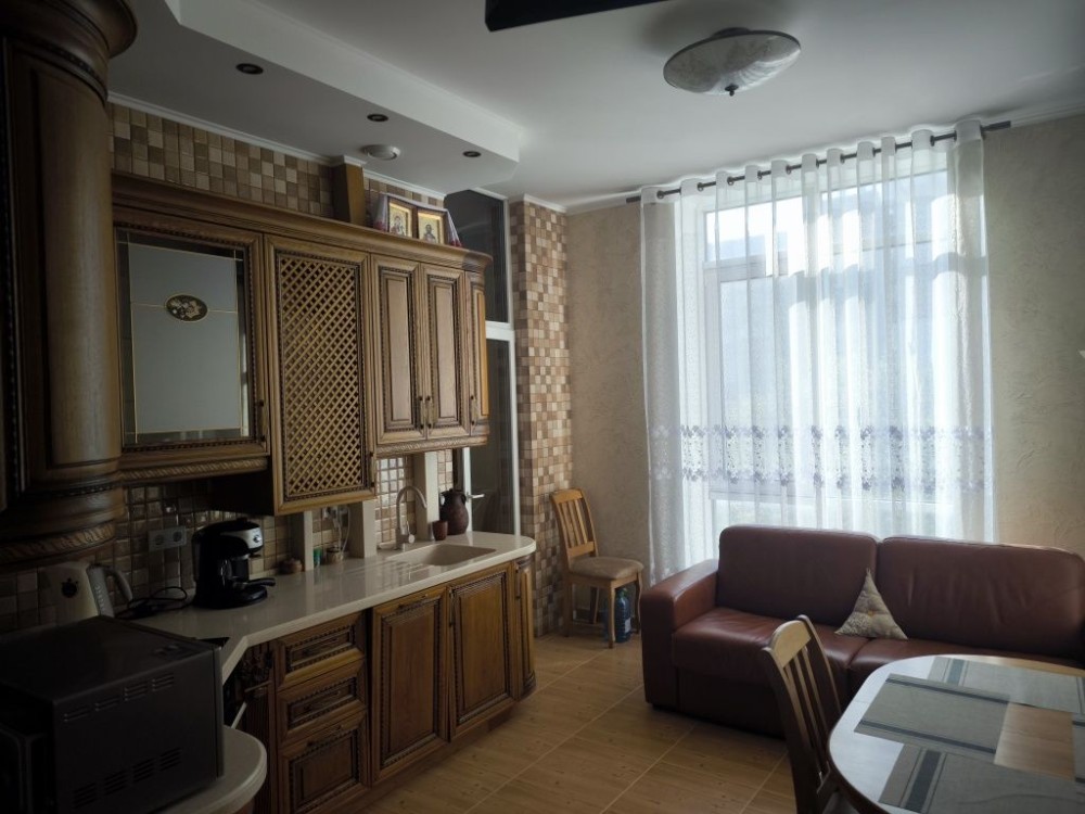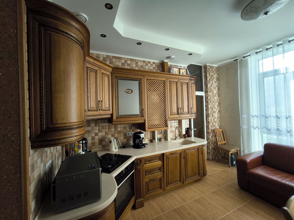 Зроблено відмінний ремонт в класичному стилі з натуральних матеріалів. Дубова кухня, меблі, столярка. Повністю оснащена сучасною побутовою технікою. Є газ, індивідуальне опалення, невисокі комунальні послуги. Приємний бонус-паркомісце в закритому дворі. Для одного, пари, без дітей і домашніх тварин.