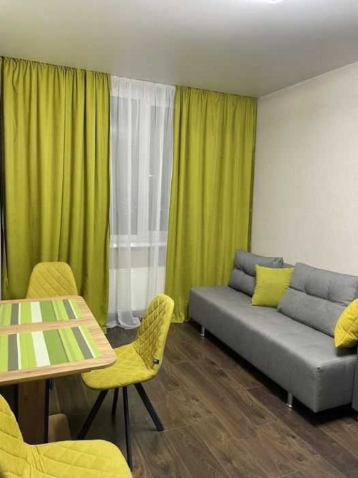 Простора спальня і кухня-студія з розкладним диванчиком. Дуже затишна і комфортна. Повністю мебльована і придатна до життя (є все: постільна білизна, посуд, чайник і інші дрібниці - заходь і живи. неймовірно гарна територія. Чудові фойє. Більше фото/відео скину. Без посередників. На довготривалий строк.
