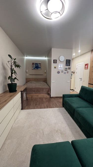 Однокімнатна квартира студія з усіма удобствами, робила для себе і продумано багато дрібниць. В ЖК працює генератор, завжди працює ліфт та є вода.