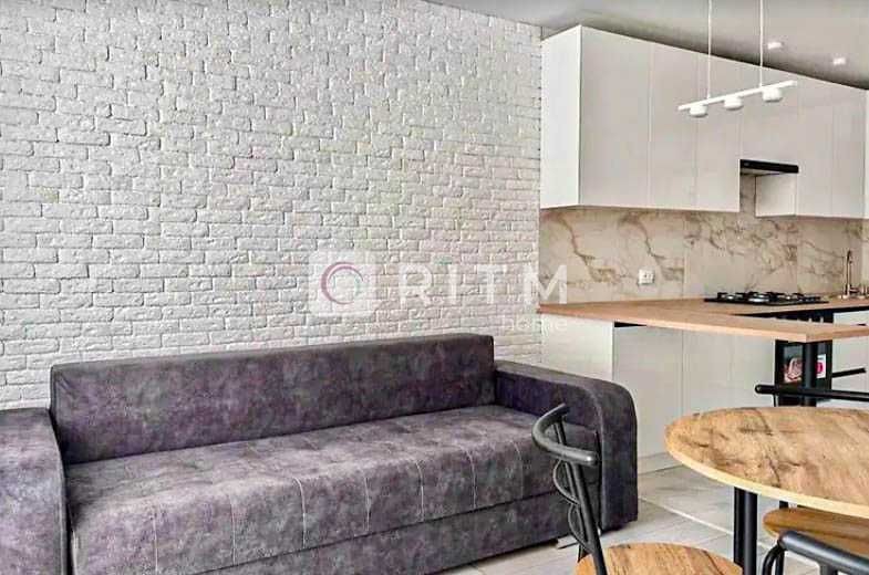 Компактна квартира у затишному районі міста. Вітальня вдало розділена на зони – для відпочинку та для зустрічей з гістьми. Окрема спальня з двоспальним ліжком.