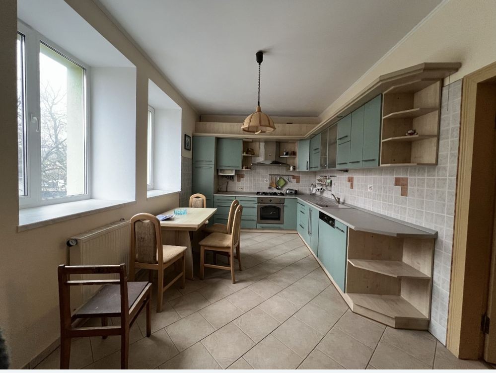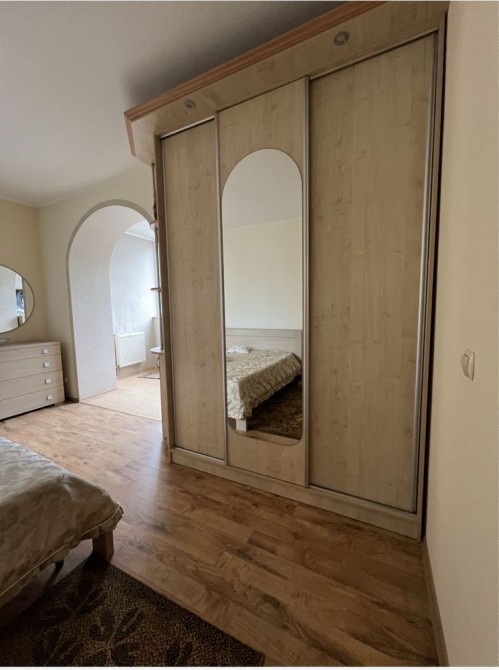 Варильна поверхня,духовка,витяжка,посудомийна машина,холодильник,повний набір посуду,комод,двохспальне ліжко,розкладний диван,2 мʼяких крісла,шафа купе,2 компʼютерних крісла, кладовка з шафою,туалет +біде.Поруч магазини,торговий центр,школа,садочок,зупинка громадського транспорту.