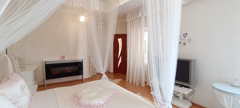 Здається в оренду просторий VIP будинок . Апартаменти . Двоповерховий будинок ( утеплений ) . Житомир . Передмістя . Всі зручності . Своя вода ( з колодязя . Встановлено насосну станцію ) . Автономне опалення ( твердопаливний котел ) . Є сонячні батареї . У будинку встановлені кондиціонери . Тепла підлога . У будинку перший поверх : передпокій . Кухня . Їдальня . Сан.вузол . Джакузі . Сауна . Масажне крісло . Спальна кімната . Дитяча . На другому поверсі : три окремі спальні . Сан.вузол . Кімната відпочинку . Плазмовий телевізор з супутниковими каналами та безкоштовний Wi-Fi . У розпорядженні банкетний зал , дитячий майданчик , приладдя для барбекю та альтанки . Камін . Холодильник . Простора ванна кімната з ванною та душем . Пральна машина . Туалетне приладдя . Рушники . Халати та капці . Лоджія з диваном і панорамним видом . Чудовий вид з вікон , ставок з рибою , ліс . У будинку є великий гараж . Є свій автономний електрогенератор . Ціна оренди будинку 45,000 гривень . Територія огороджена .