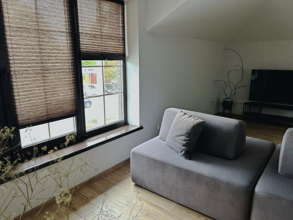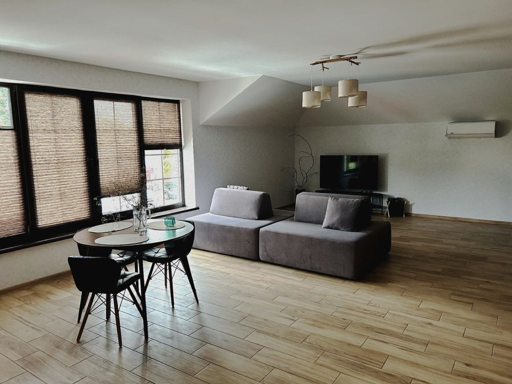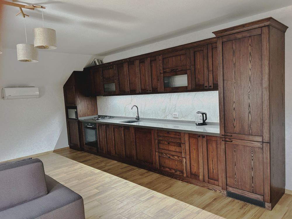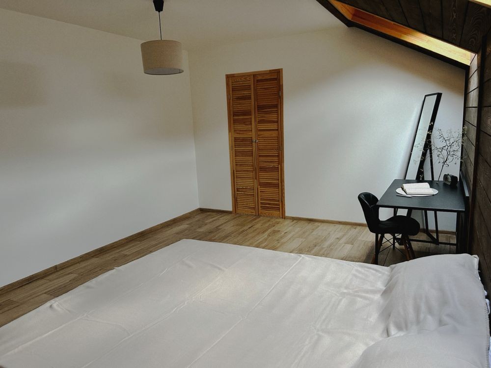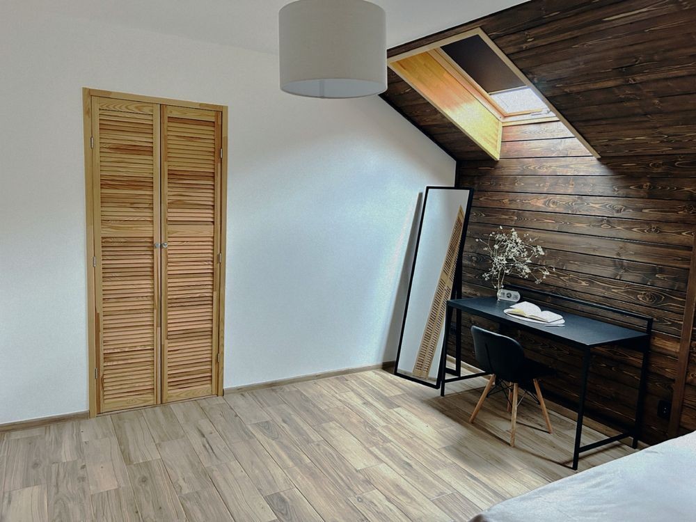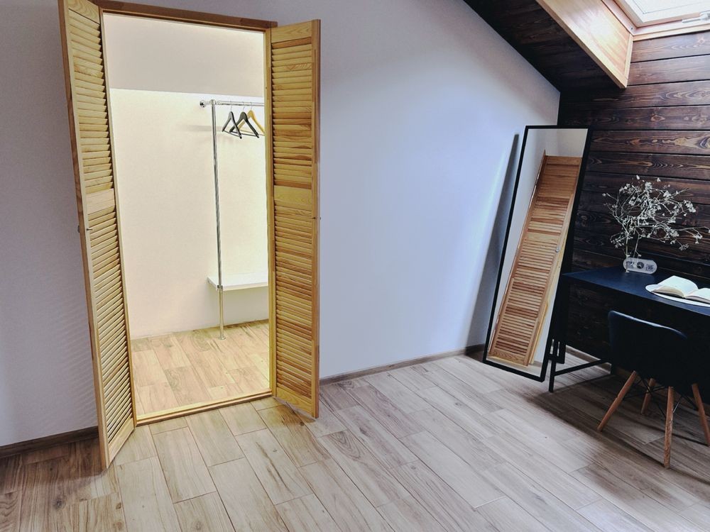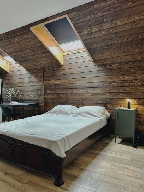 - Мансарда (45 кв.м), фанерована деревом, обладнана кондиціонером, простір може трансформуватися за потребою