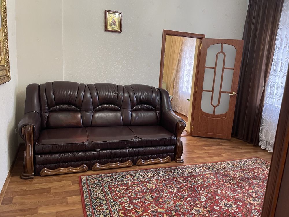 Здаеться 2 поверх будинку в центрі міста. 3 кімнати (суміжні) люкс , автономне опалення, газовий котел, якісний ремонт, Меблі, ліжко двухспальне , 2 дивани, шкаф купе, кухоні меблі, холодильник, пральна машина. У дворі парковальне місце для авто ,двір закритого типу. Розвинута інфраструктура , рядом Соборна, ринок, магазини.