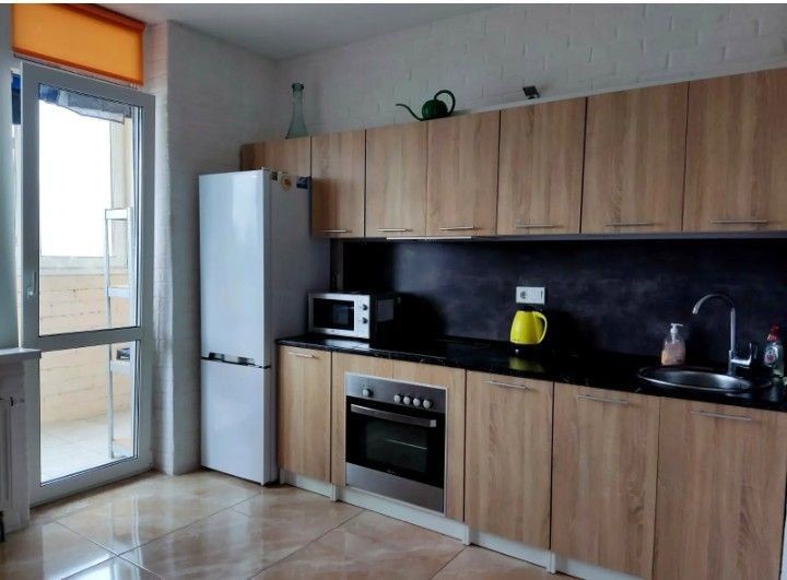 Квартира з гарним євроремонтом, плитка , ламінат вбудовані шафи-купе, вбудована кухня, в кімнаті розкладний диван , крісло, стіл та телевізор, є роутер, вайфай, броньовані двері