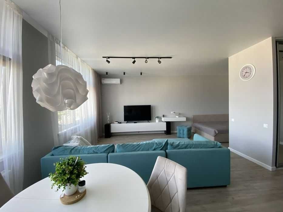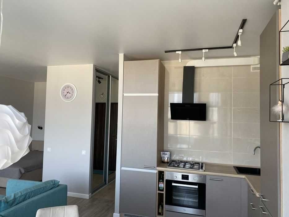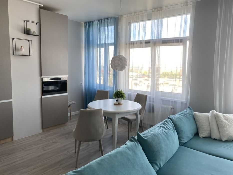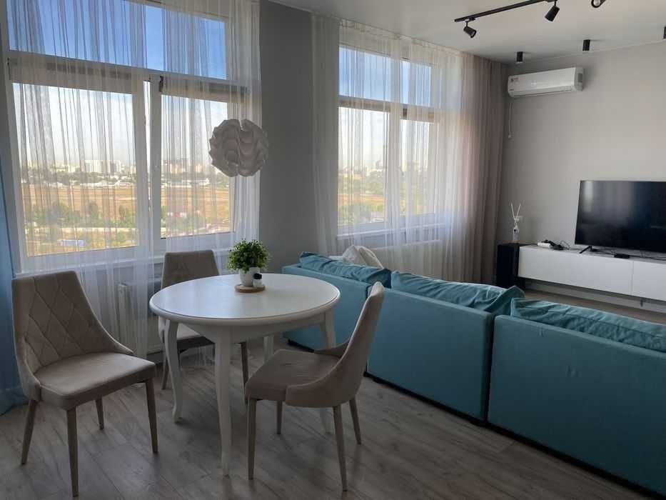 Поруч — повна інфраструктура для життя: магазини, кафе, сервіси. У квартирі встановлений кондиціонер. Територія комплексу закрита та охороняється.