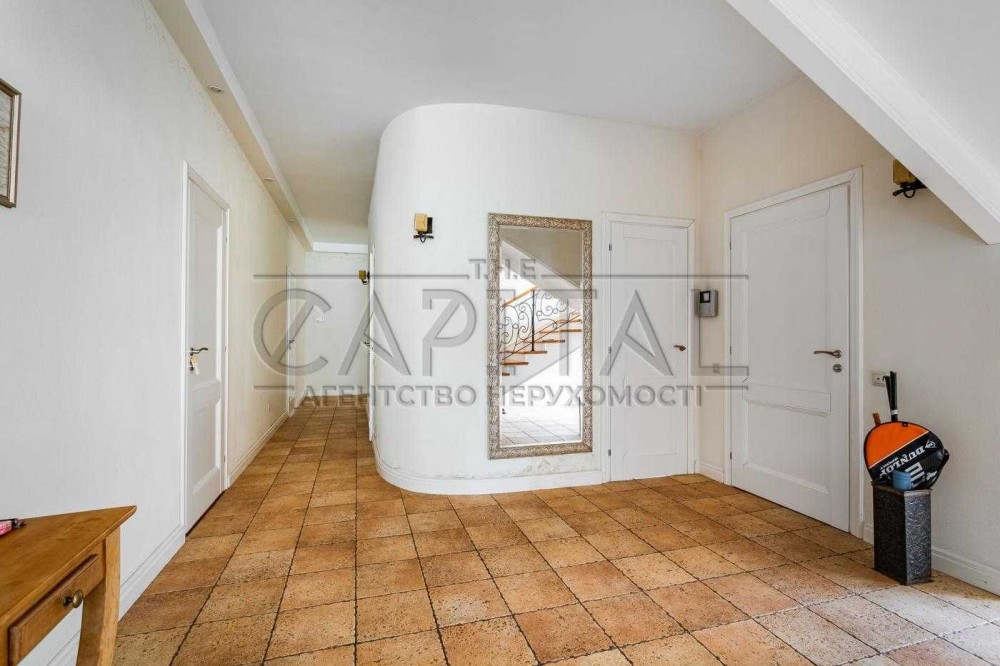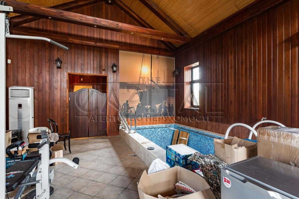 Перший поверх вражає функціональністю та стилем: просторий світлий хол з елегантними дерев'яними сходами, сучасна кухня з островом та вбудованою технікою преміум-класу, затишна вітальня з каміном та панорамними вікнами. Унікальною перевагою є власний критий басейн, зона для тренувань із сучасними тренажерами та фінська сауна – справжній домашній спа-центр для відновлення сил. Тут також розташована гостьова спальня з окремою ванною кімнатою, що забезпечує повну приватність.