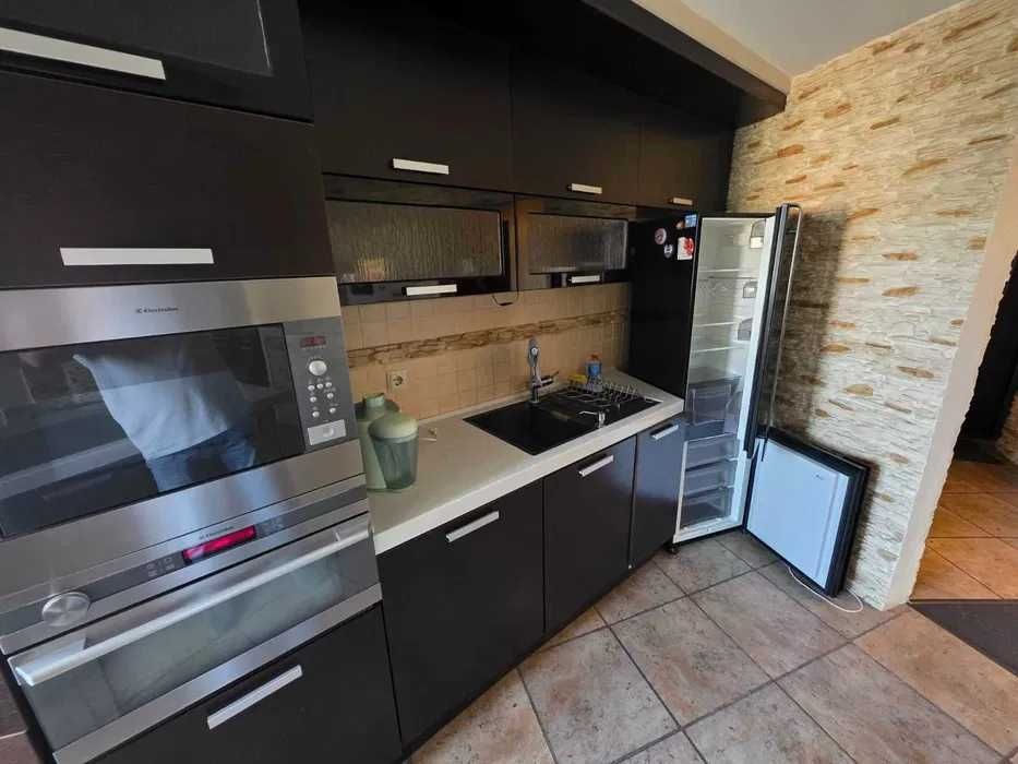 Комфортна квартира в затишному районі міста з просторою кухнею що містить шафи для зберігання посуду та побутову техніку (варильна панель, духова шафа, холодильник), що допоможуть у приготуванні та підтримуванні чистоти. Поряд зручний обідній стіл. Ванна кімната має необхідну сантехніку , є велика кутова ванна.
