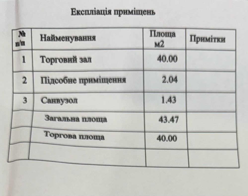 Торгова площа: 40,00 м²
