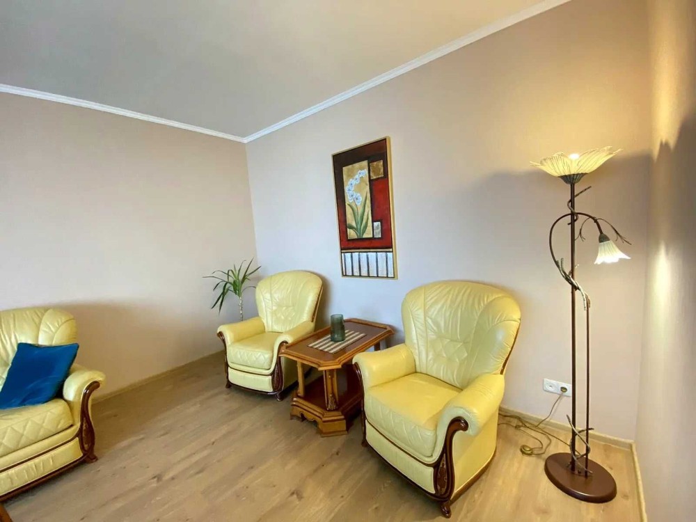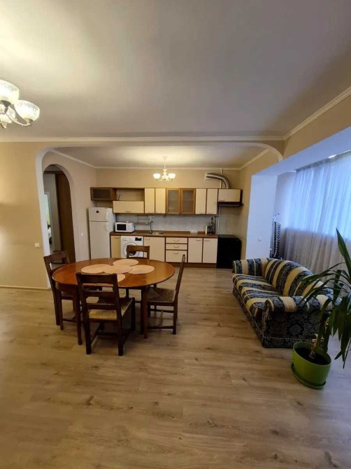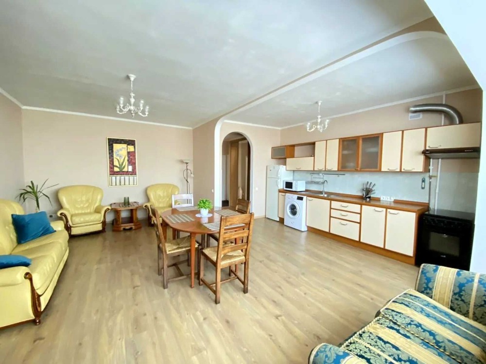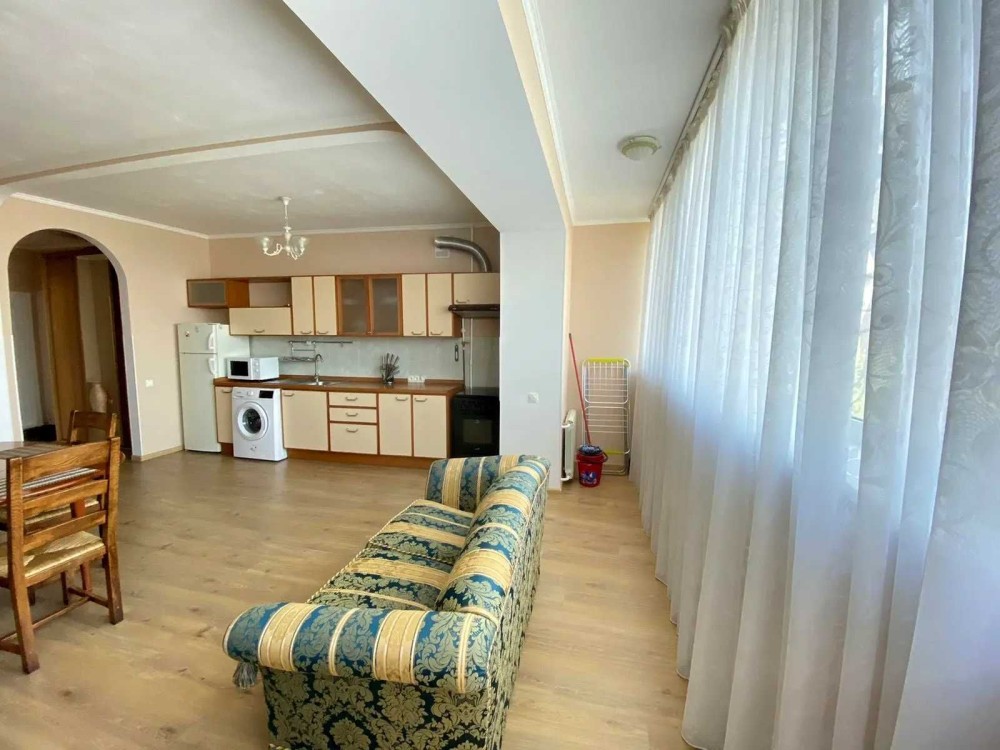 Квартира оснащена всіма необхідними меблями та технікою, сейфом, посудом та іншим. Є центр. гаряча вода та бойлер.