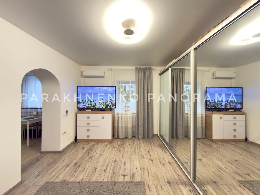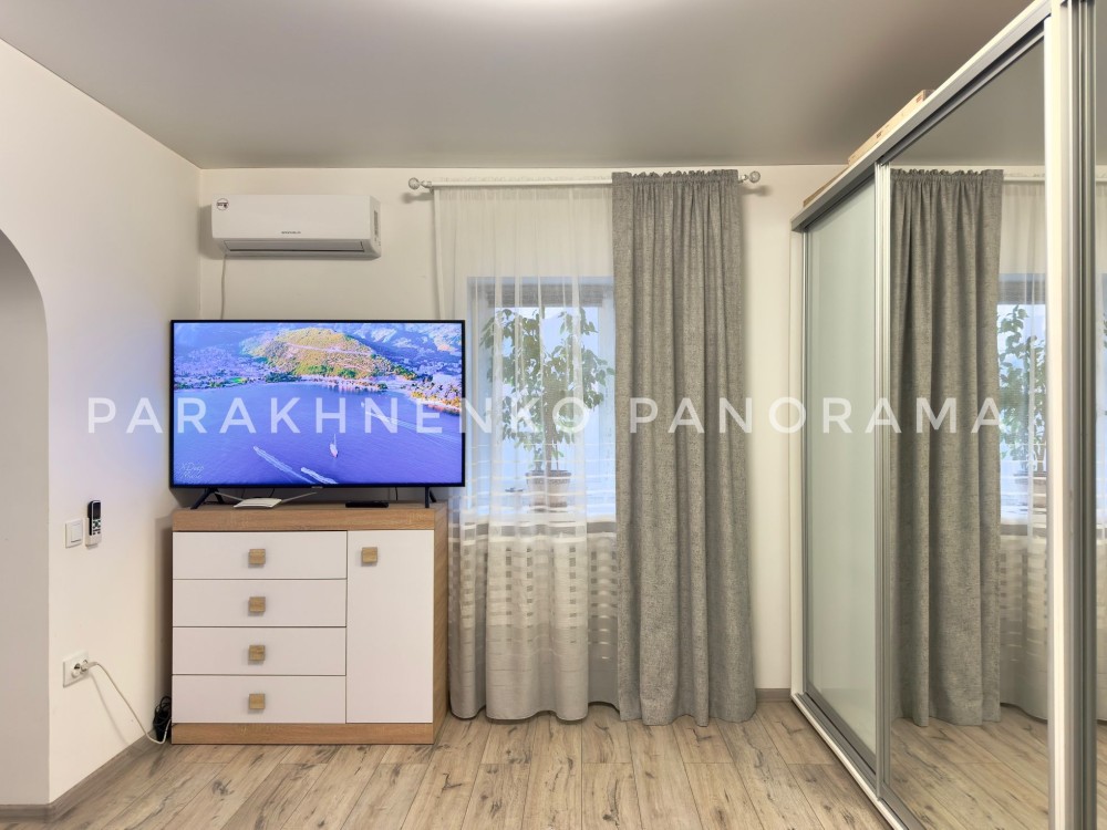 Будинок повністю мебльований та укомплектований технікою: велика шафа-купе, розкладний диван, комод, килим, телевізор зі шнуром для Smart TV, кондиціонер, пральна машина, пилосос, праска та дошка для прасування. Кухня обладнана меблями, є стіл та 5 стільців, електрочайник, тостер, мікрохвильова піч, витяжка. Також є дві сушарки для білизни — на батарею та окрема.
