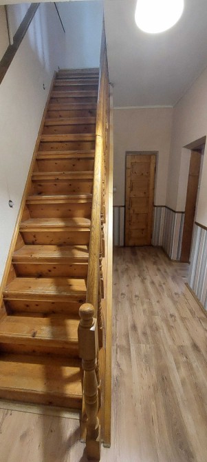 На першому поверсі-вітальня-зала та кухня , на другому-три окремих кімнати з дверями.Також на кожному поверсі є сан.вузол.