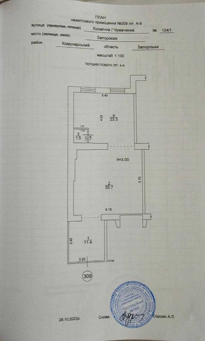 м. Запоріжжя, вул. Космічна 124, здаються в оренду приміщення 54.7; 58.1; 71.9 кв.м.