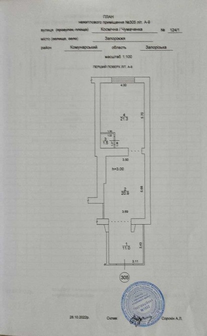 Опис технічного стану приміщень: До кожного приміщення маються окремі фасадні входи з місяцем для розміщення вивіски, встановлені двокамерні склопакети з наклеєною протиударною плівкою у 300мк., з тильної частини приміщень встановлено двокамерні склопакети захищені гратами.
