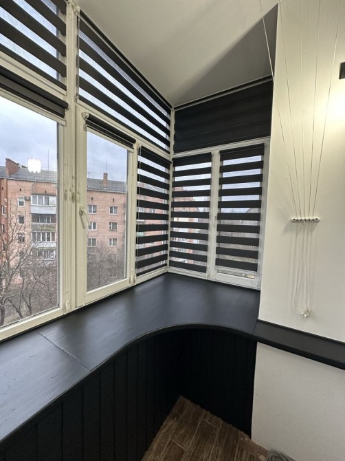 є засклений балкон з обладнаною відпочинковою зоною.