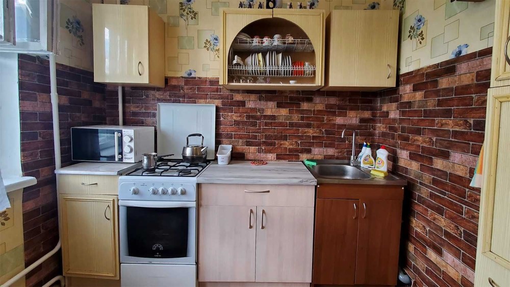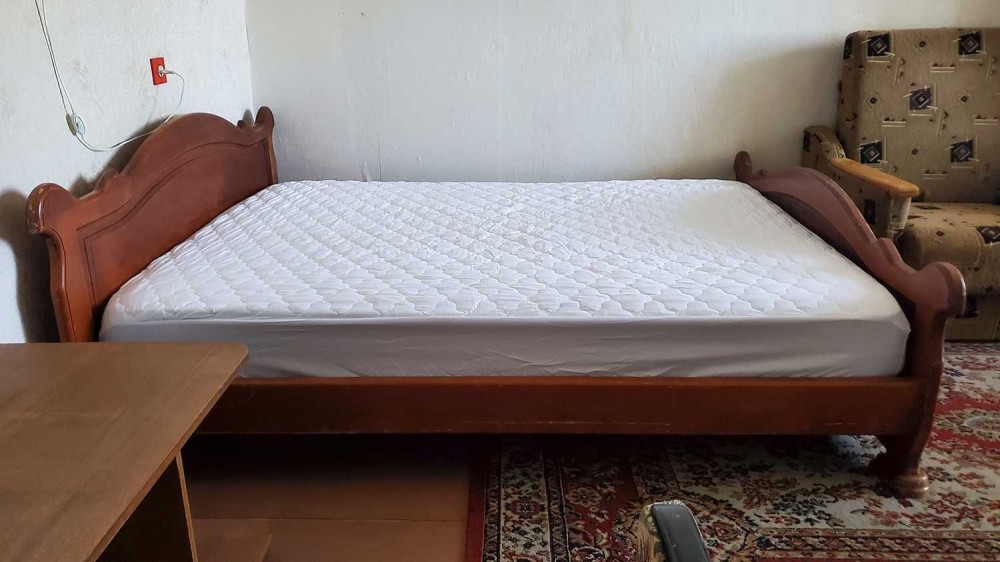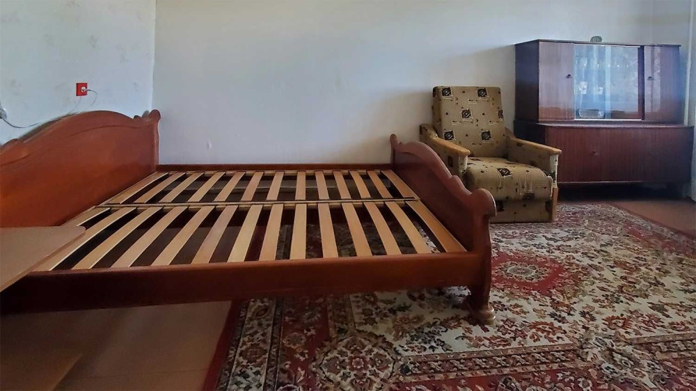 У квартирі чотири спальних місця: двоспальне ліжко, розкладний диван та два крісла ліжка. Шафа купе.