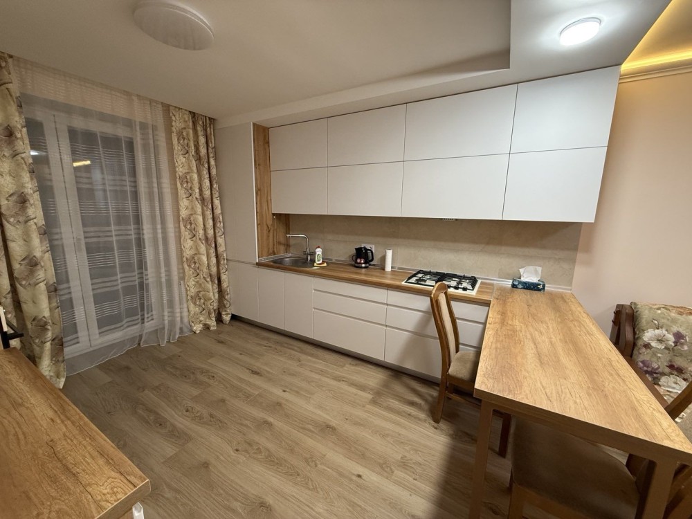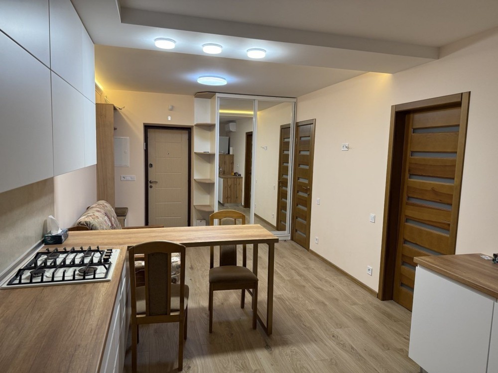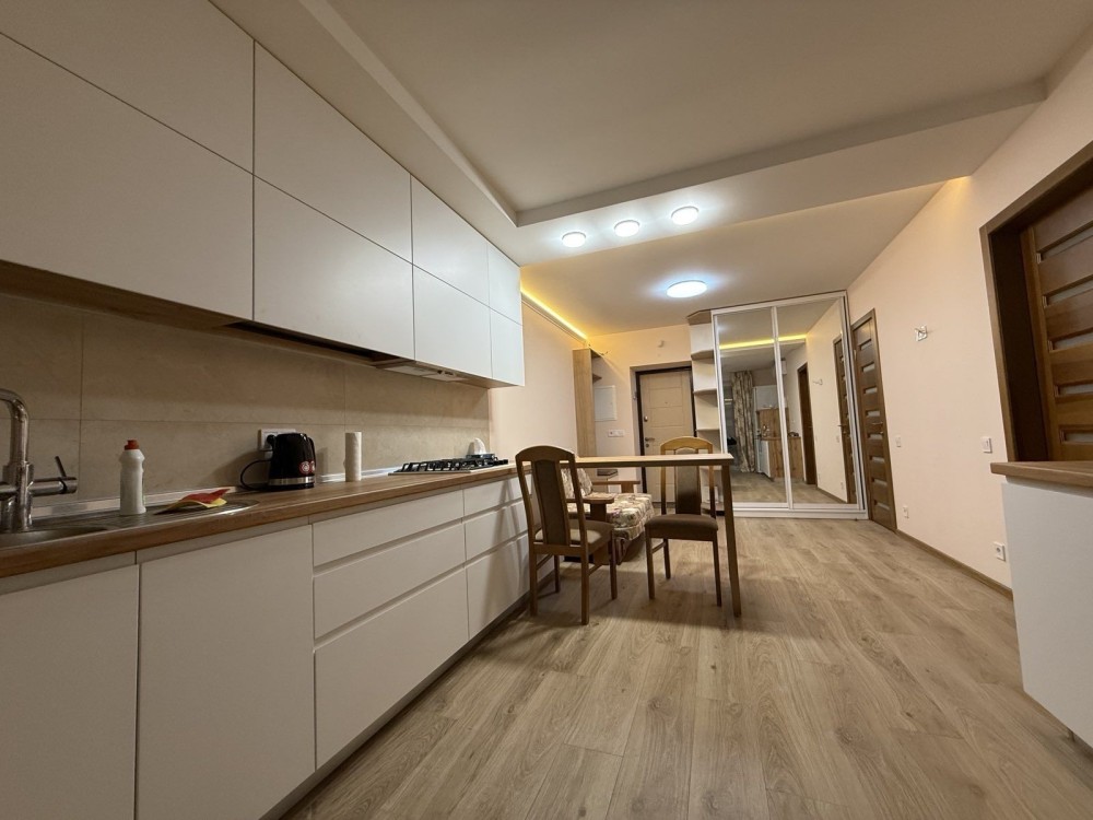 Оренда стильної 1 к кв з кухнею студією в новому будинку ЖК "Файна Таун" в Шевченківському районі, вул. Салютна, 2 Квартира 43 м2 , розташована на четвертому поверсі та складається з передпокою, спальні, великої кухні -студії та санвузла. Вікна квартири виходять в двір. Облаштована всіма необхідними меблями з екологічно чистої деревини та оснащена побутовою технікою: телевізор Samsung Smart 43, кондиціонери в кухні та кімнаті, плита індукційна, вбудований холодильник, духова шафа з функцією мікрохвильової печі, пральна машина з сушаркою. В кухні та ванній кімнаті тепла підлога, високошвидкісний інтернет. ЖК "Файна Таун" це: закрита територія з входом по картці, цілодобова охорона, відеоспостереження, паркінг, підземні контейнери для сміття, зарядні станції для електромобілів та лавки з інтегрованими батареями для підзарядки девайсів, розумне освітлення, яке підлаштовується під час доби та ще багато чого для того, щоб жити з комфортом й ні в чому себе не обмежувати) розповім при перегляді. Зручне транспортне сполучення та розвинута інфраструктура: магазини,спортивні та пішохідні зони ,зона барбекю, ресторани та кафе. Квартира, в якій поєднані комфорт та затишок, шукає своїх порядних орендарів молоду пару або одну людину без дітей та тварин. Перша оренда, квартира вільна.