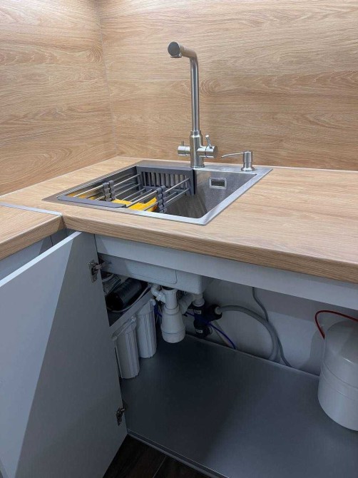 М’які меблі (диван, ліжко). Гардероб, вбудовані шафи. Штори на вікнах з дистанційним керуванням. Кухня-студія мебльована. Кондиціонер, електропіч, комбінована «духова шафа+СВЧ», холодильник, посудомийна машина, система очищення води, електрочайник й інші необхідні корисні речі. Є праска+дошка для прасування, сушарка для білизни.