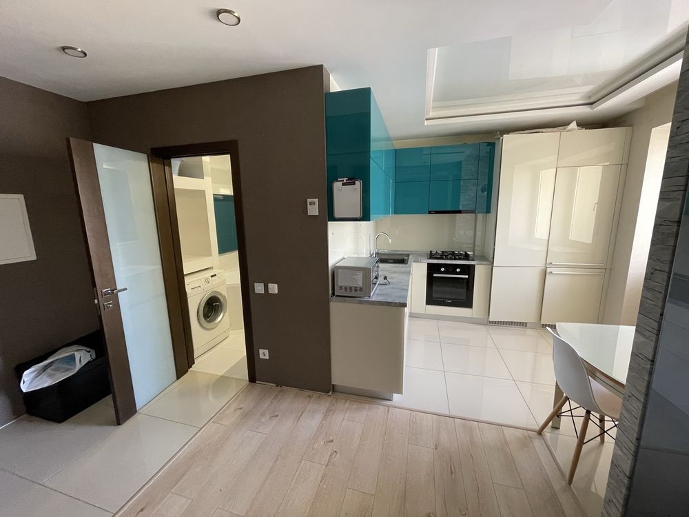 Оренда стильної 1 к кв з кухнею студією в новому будинку ЖК "Файна Таун" в Шевченківському районі, вул. Салютна, 2 Квартира 43 м2 , розташована на четвертому поверсі та складається з передпокою, спальні, великої кухні -студії та санвузла. Вікна квартири виходять в двір. Облаштована всіма необхідними меблями з екологічно чистої деревини та оснащена побутовою технікою: телевізор Samsung Smart 43, кондиціонери в кухні та кімнаті, плита індукційна, вбудований холодильник, духова шафа з функцією мікрохвильової печі, пральна машина з сушаркою. В кухні та ванній кімнаті тепла підлога, високошвидкісний інтернет. ЖК "Файна Таун" це: закрита територія з входом по картці, цілодобова охорона, відеоспостереження, паркінг, підземні контейнери для сміття, зарядні станції для електромобілів та лавки з інтегрованими батареями для підзарядки девайсів, розумне освітлення, яке підлаштовується під час доби та ще багато чого для того, щоб жити з комфортом й ні в чому себе не обмежувати) розповім при перегляді. Зручне транспортне сполучення та розвинута інфраструктура: магазини,спортивні та пішохідні зони ,зона барбекю, ресторани та кафе. Квартира, в якій поєднані комфорт та затишок, шукає своїх порядних орендарів молоду пару або одну людину без дітей та тварин. Перша оренда, квартира вільна.