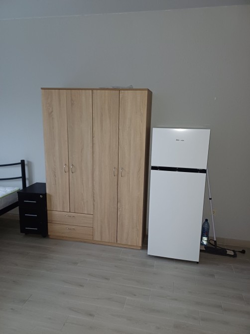 В квартирі є двоспальне ліжко, холодильник, шафа, бойлер,стіл,пральна машина.