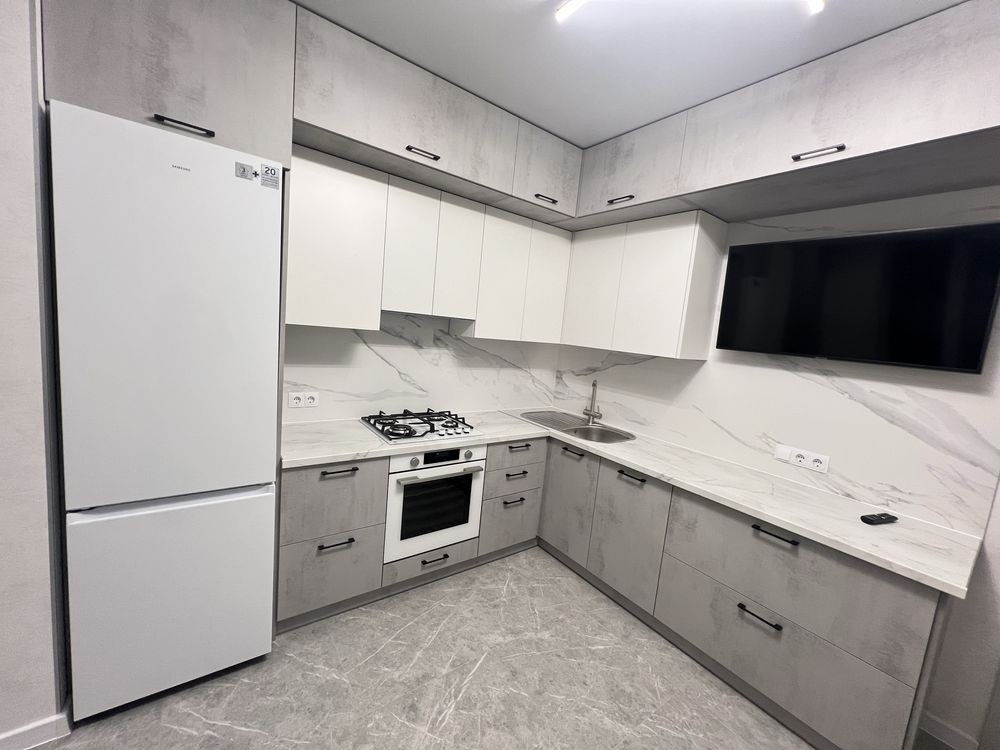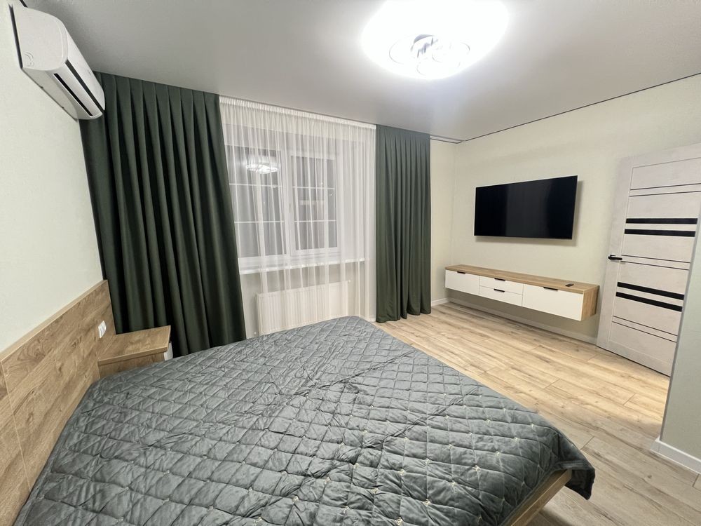 В квартирі є все необхідне: пральна машина, кондиціонер, мікрохвильова піч, посудомийна машина, духовий шкаф, варильна поверхня, холодильник, 2 wi-fi телевізори в спальні 65 діагональ, в кухні - 43. Wi-fi підключений. Є осмос. Все нове, все працює.