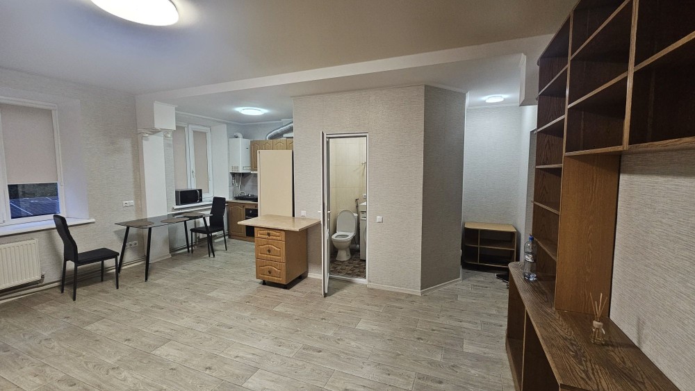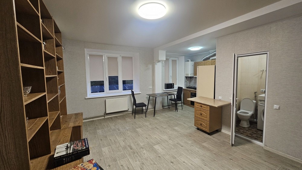 Квартира знаходиться біля готелю Європа, автономне газове опалення, ремонт, меблі, 2 кондиціонери, пральна машина, холодильник. Студія та окремо спальня, балкон.