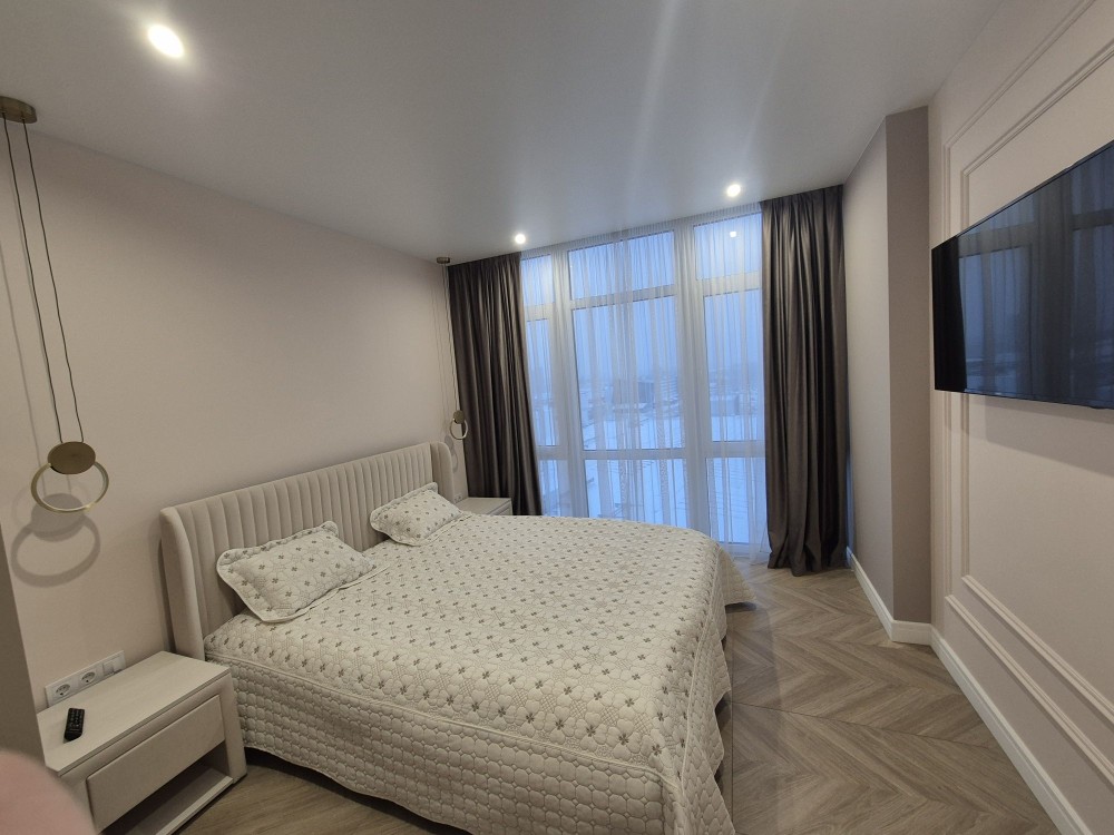 65 метрів,середній поверх, автономне електро опалення, тепла підлога, гардеробна, кондиціонери,дорогі меблі та побутова техніка.