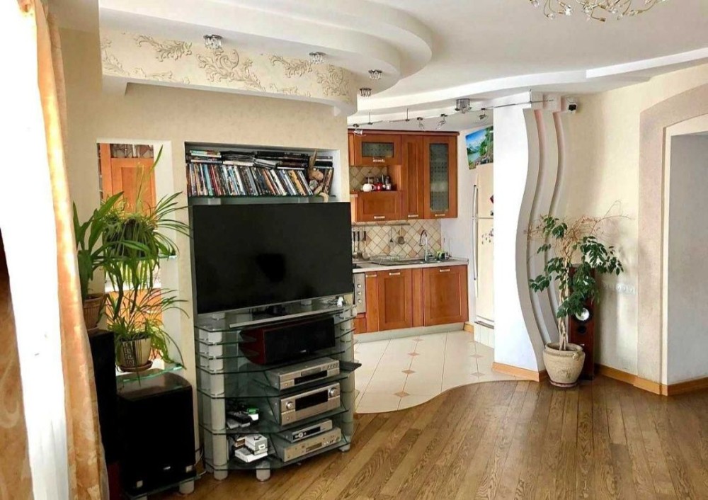 Плазмовий телевізор Sony Bravia, Wi-Fi, Smart TV, кондиціонер, відеоспостереження, сигналізація, велика газова плита, велика духова шафа, повний набір кухонної техніки та посуду, посудомийна машина, холодильник, морозильник, фільтр очищення питної води Zepter, пральна машина.