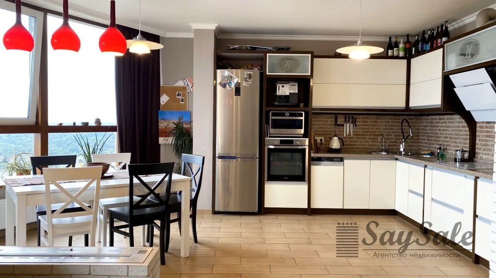 Площа 140 м²: 4 кімнати на двох поверхах + простора засклена тераса з видом на Київ;