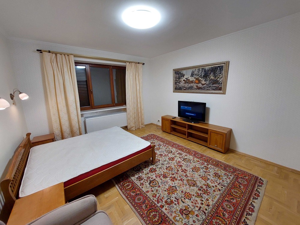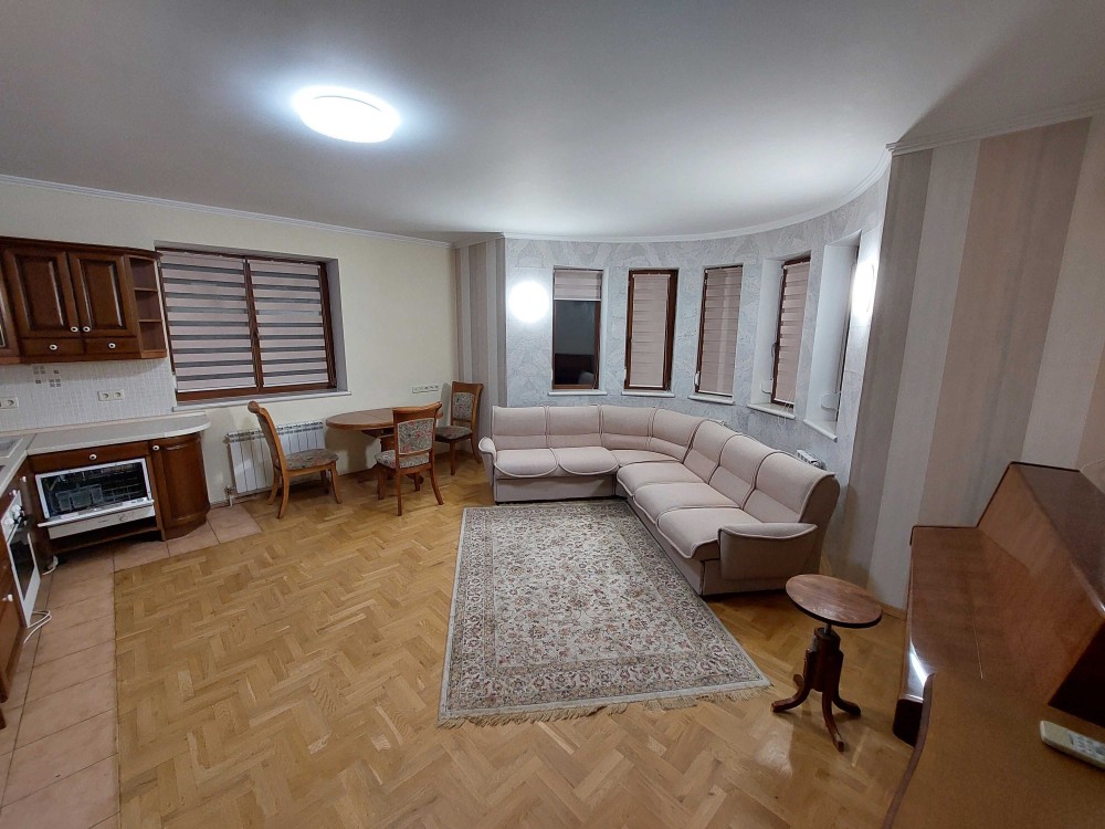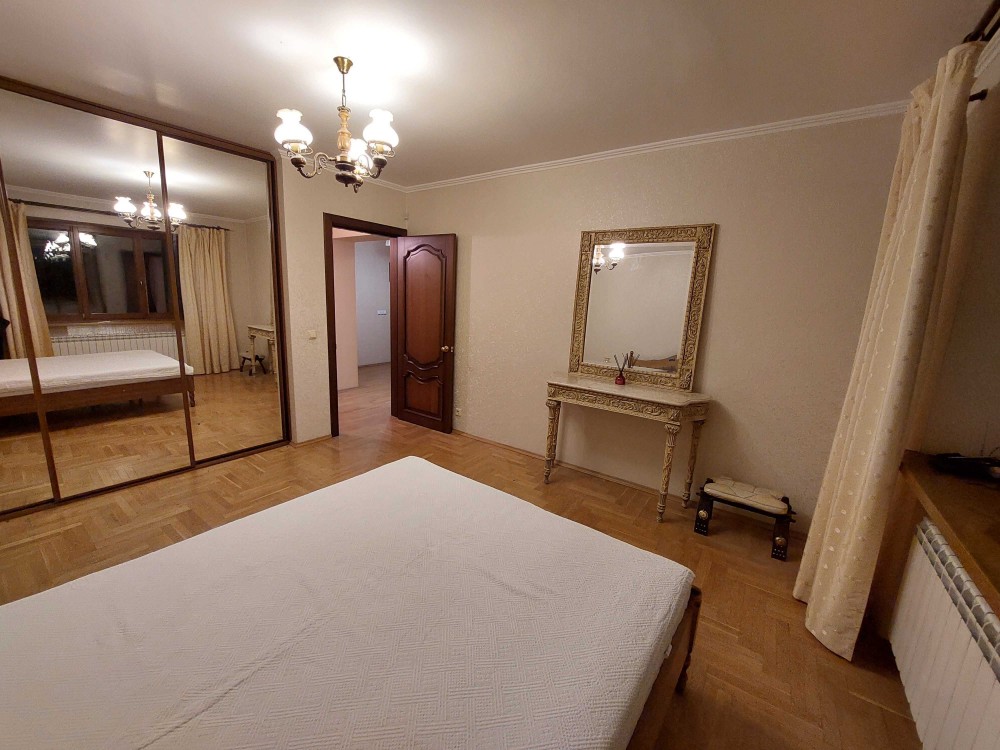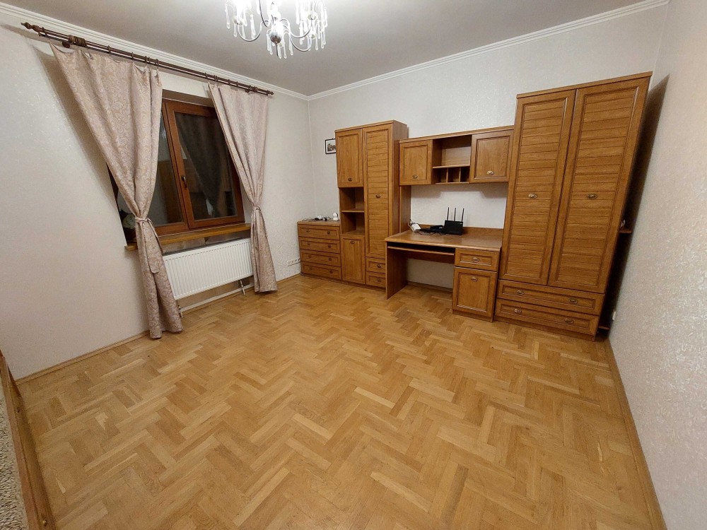 2 двоспальних ліжка, розкладний кутовий диван, 2 крісла, дві шафи-купе, комп'ютерний стіл, комоди, вбудована кухня. Піаніно.