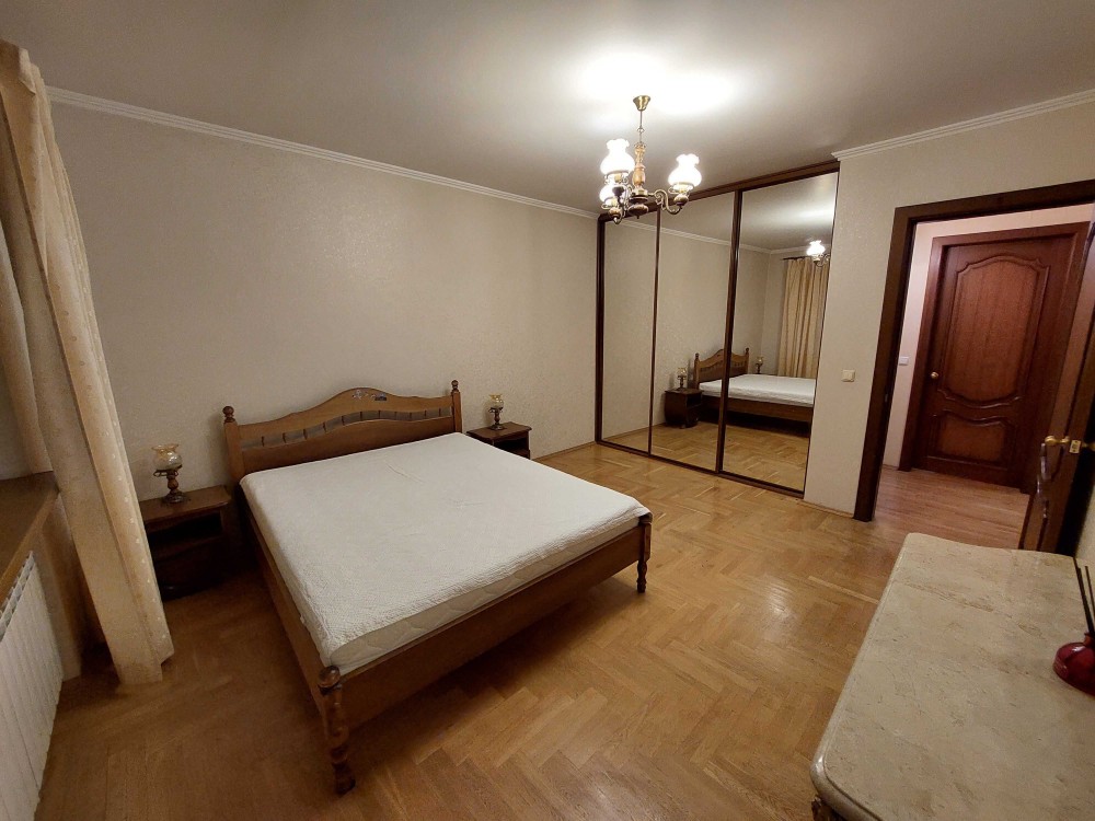 Двоспальне ліжко, шкіряний диван, 2 крісла, розкладний диван, шафи для одягу, комп'ютерний стіл, дві шафи-купе, вбудована кухня.