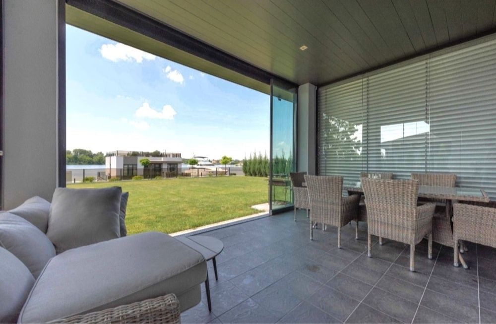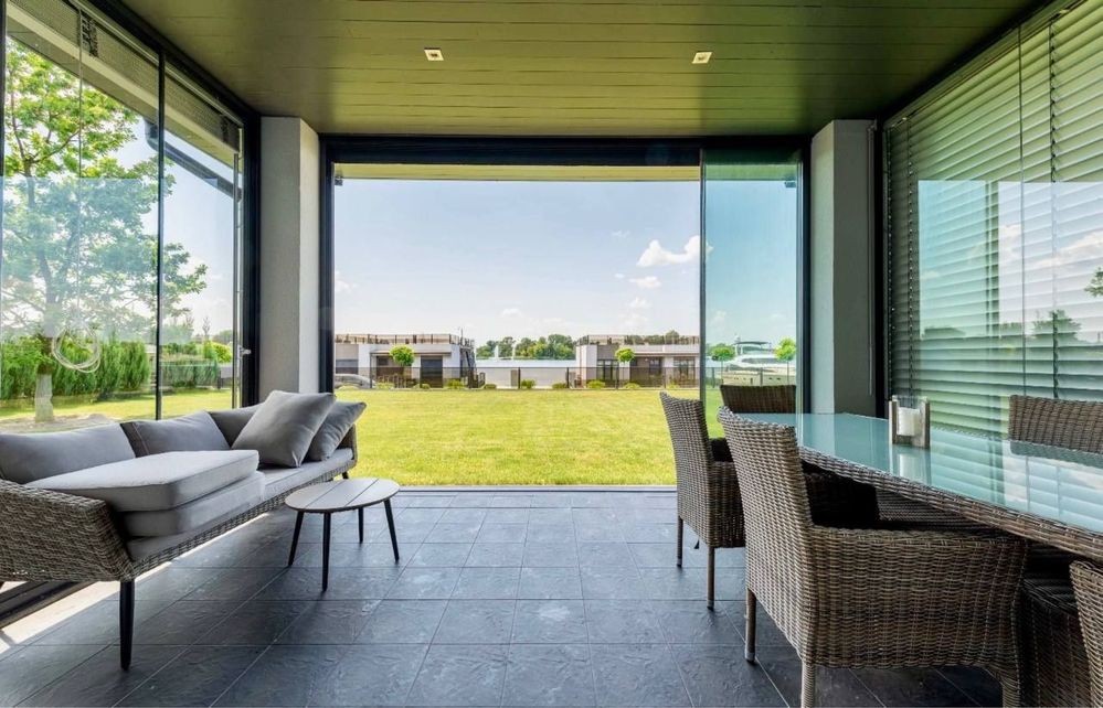 Також простора скляна тераса- повністю мебльована, бойлерна, навіс