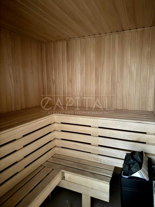 Вітальня з каміном, окрема кухня, 4 спальні, гардероб, 5 с/у, сауна. Окрема зона котельні і пральні.