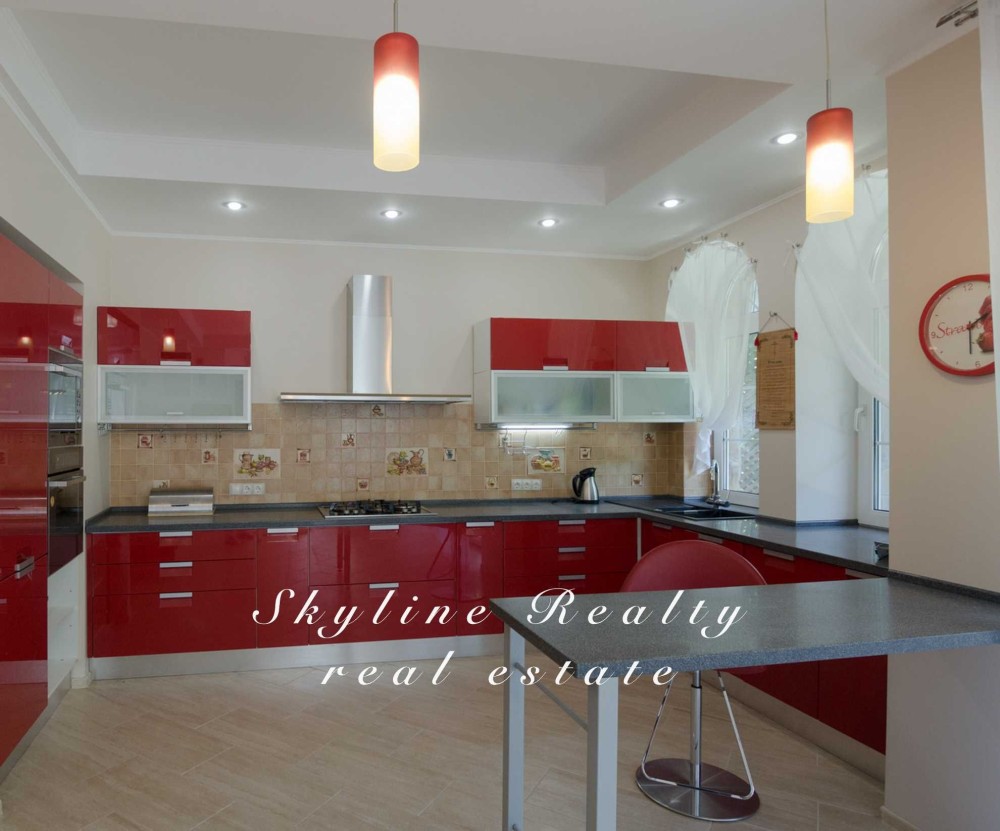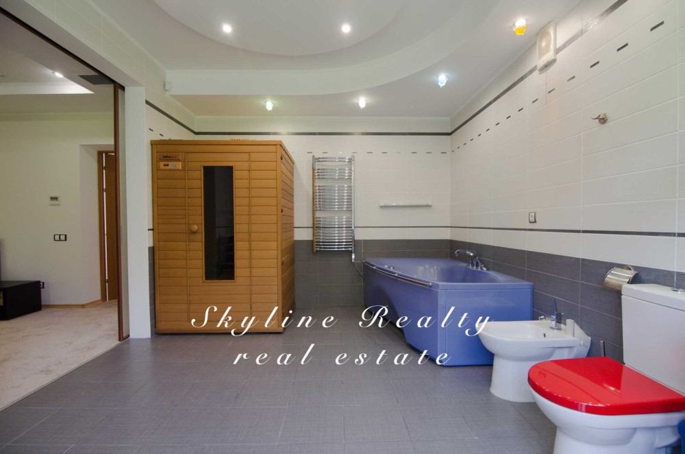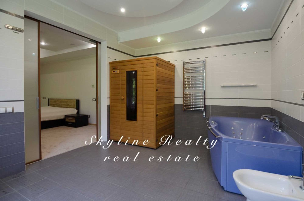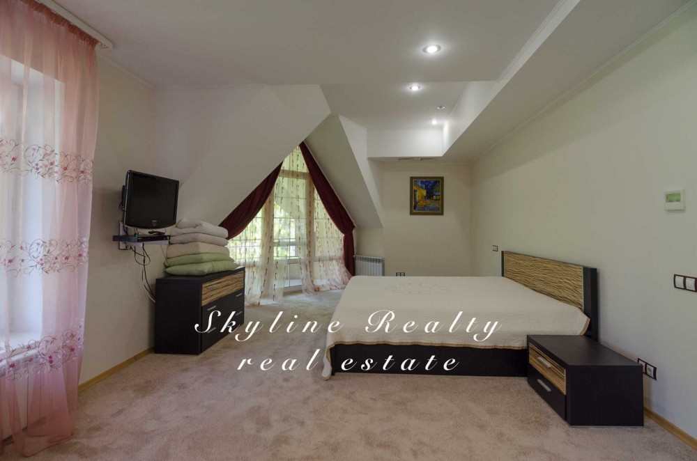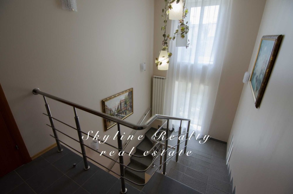 2 поверх: госп.спальня з ванною кімнатою та 2 тераси + 2 кімнати, з/в, вбиральня. Повністю укомплектований меблями та технікою. Гараж на 2 авто. Сигналізація.