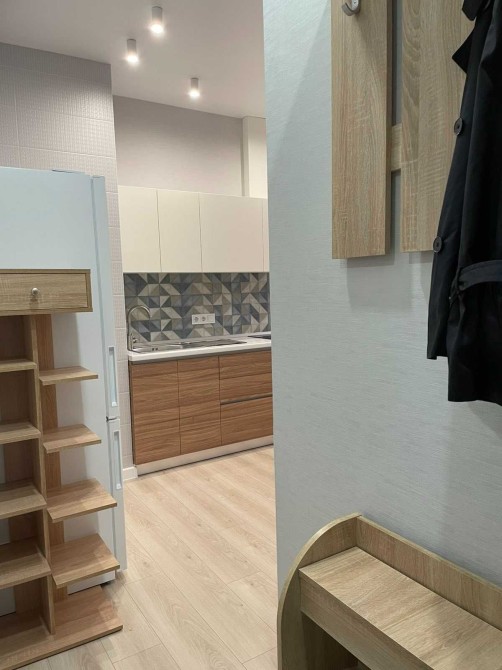 Студія грамотно розпланована на спальну зону і зону кухні. Є велика гардеробна , санвузол-душова кабінка.