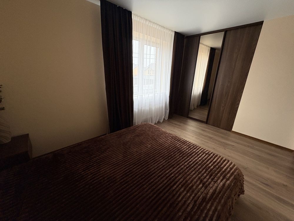 Асфальтована вулиця, під шлагбаумом. Все навколо обжито. Двір облаштований, є тераса. Затишний будинок. Фото всі дійсні. Перший поверх кухня-вітальня з виходом на терасу, одна спальня та санвузол. Другий поверх 3 спальні. Одна з них без ліжка, можна доставити своє, при потребі