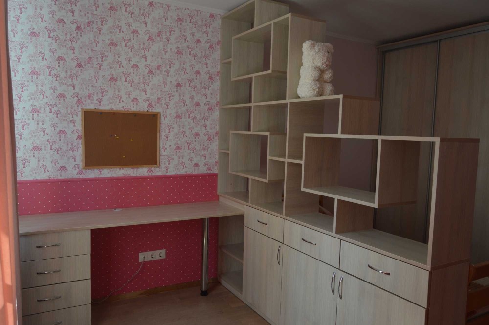 Ліжко двоспальне, ліжко підліткове, розкладний диван, вбудовані шафи, столи, стільці та ін.