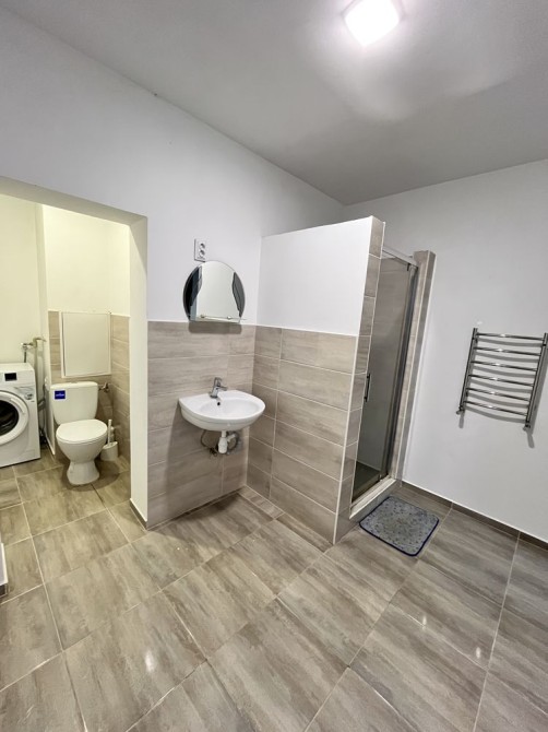 Спільна кухня та санвузол, окрема кімната яка закривається з двоспальним ліжком, шафою купе та робочим місцем.