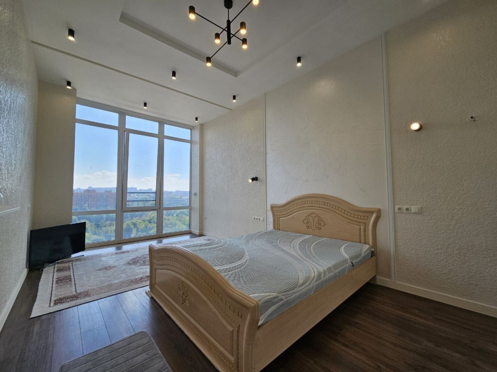Поверх 14/18. Квартира двустороння. Індивідуальне електроопалення. Тепла підлога, 4 кондиціонера, посудомийна машина, холодильник, два телевізора. Гардеробна в ві тальні та в спальні. ОСМД. Лічильники на воду та електрику. Вартість оренди 1500 $/міс +кп