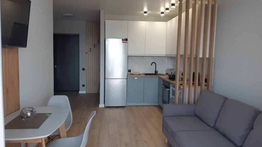 Кухня-студия и отдельная спальня.