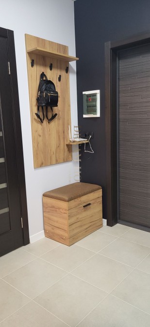 В коридорі також шафа-купе і тумба для взуття.